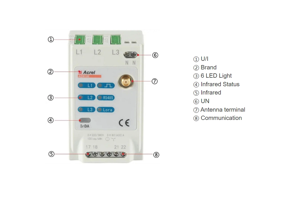 AEW100 wireless metering module is mainly used to measure three-phase active energy of low-voltage network. It has RS485 communication and 470MHz wireless communication functions, which is convenient for users to monitor, collect and manage electricity consumption. The product has the advantages of high precision, small size and convenient installation. It can be flexibly installed in the distribution box to realize sub-item electric energy measurement, statistics and analysis for different areas and different loads.