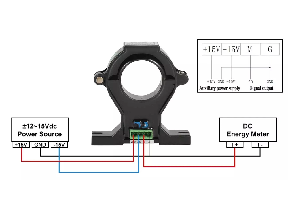 AHKC-EKB Hall current sensor can collect main incoming line current, multi-channel branch DC current and leakage current. The Hall current sensor converts the primary side DC current into an analog signal and outputs it to the multi-loop monitoring device. The multi-loop monitoring device samples the analog signal and calculates the magnitude of the measured current.