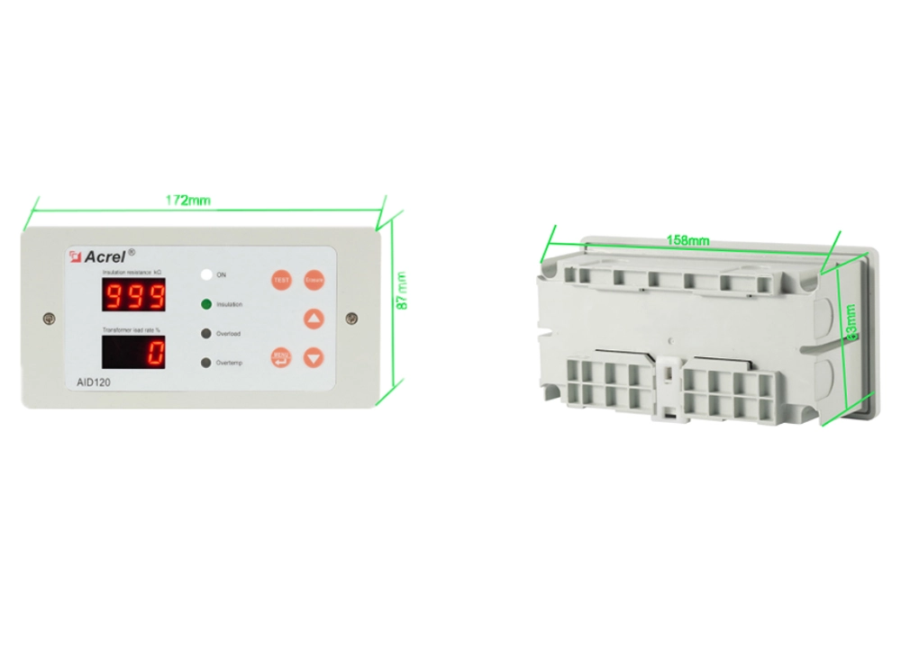 The AID120 alarm and display indicator can monitor one AIM-M100, and it is installed in-wall. It is suitable for monitoring in operating rooms or intensive care units that only use a single set of isolated power supply. It has sound and light alarms for insulation, overload, over-temperature, equipment failure and other failures. It can be displayed by digital tubes and has RS485 communication.