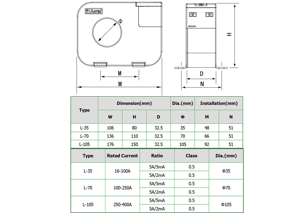AKH-0.66L residual current transformer is specially used for collecting low-voltage residual current signals, and can be used in conjunction with ARCM series of electrical fire monitoring devices, ARD series of motor protection devices and ASJ series of residual current relays. The product can output 0-5(2)mA or 0-1V for the second time, and there are round hole type and square hole type for users to choose according to their needs.