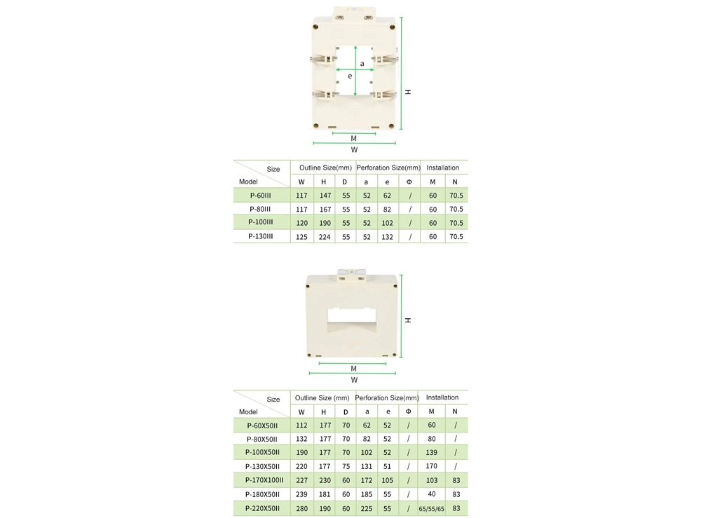 AKH-0.66/P protection current transformer is mainly suitable for the relay protection circuit with multiple busbars passing through. This product is developed for the detection of short circuit or overload current in the protection system. It has different accuracy levels and accuracy limit coefficients, and can be expanded to different perforation sizes. It is used in low-voltage power distribution protection The system is widely used in line protection of power plants and industrial and mining enterprises.