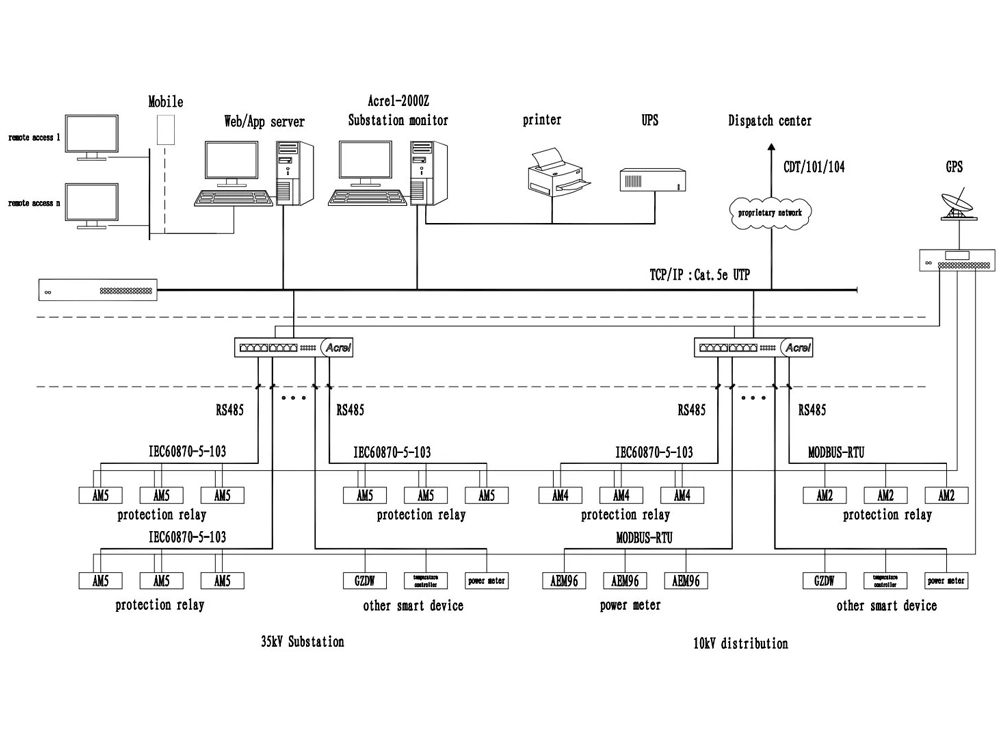AM4 middle voltage protective relays in power systems integrates protection and control, and is suitable for user terminal substations (substations) with a voltage level of 35kV and below, and can realize the protection and control of user substations.It adopts advanced, mature and reliable protection principles and algorithms, with strong anti-interference performance, high reliability, flexible protection implementation, and redundant design for communication. The device has 12 channels of switch value acquisition and 5 channels of relay output, and can cooperate with Acrel-2000Z power monitoring software to realize an unattended end-user substation power distribution automation system.