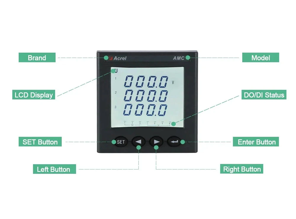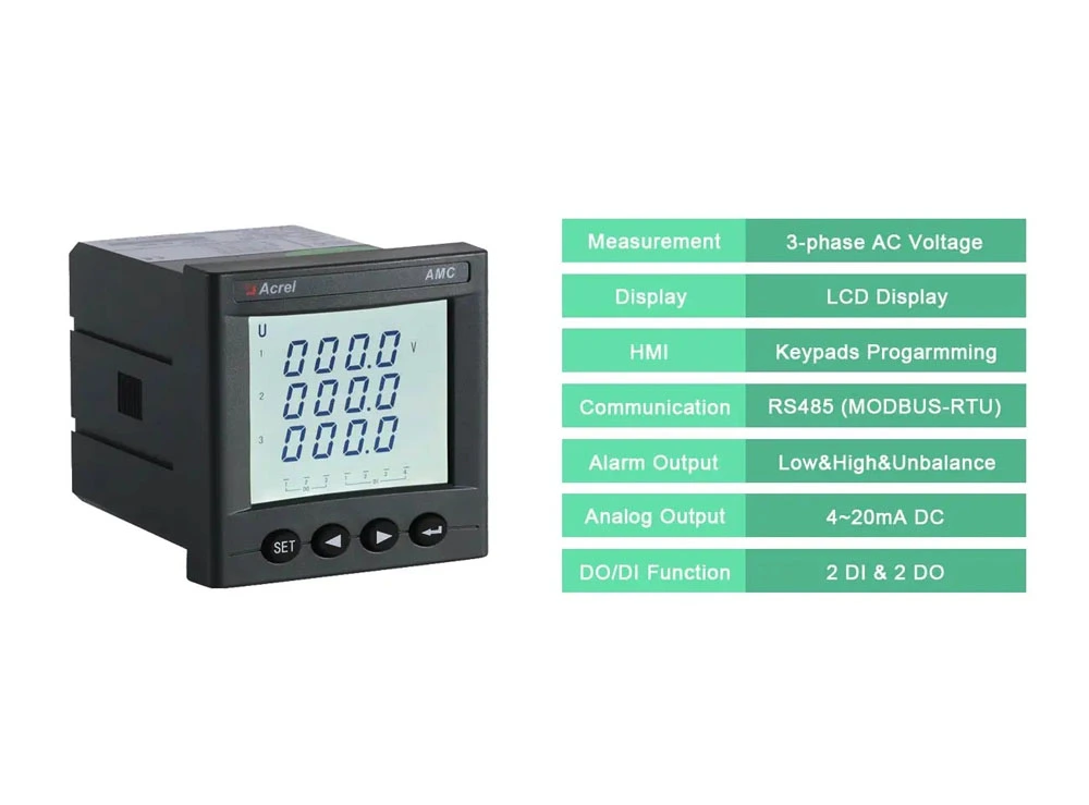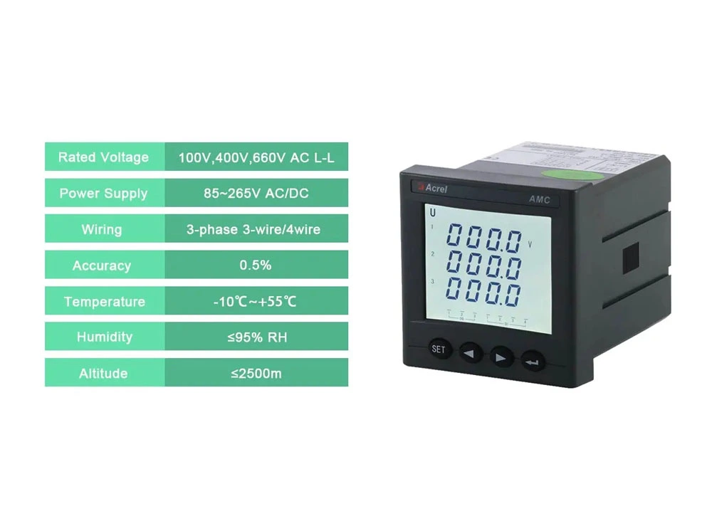 Acrel's LCD digital display voltage meter is the perfect choice for measuring three-phase AC voltage. Featuring an easy-to-read LCD display and optional communication, alarm output, and analog output capabilities, this high-quality product (AMC72L-AV3) is essential for any AC panel voltmeter.