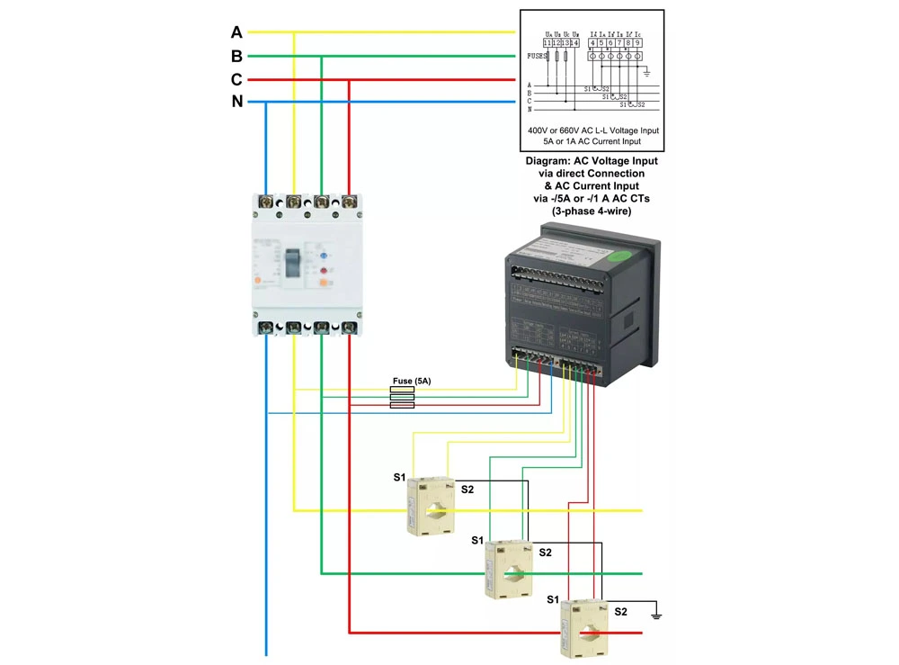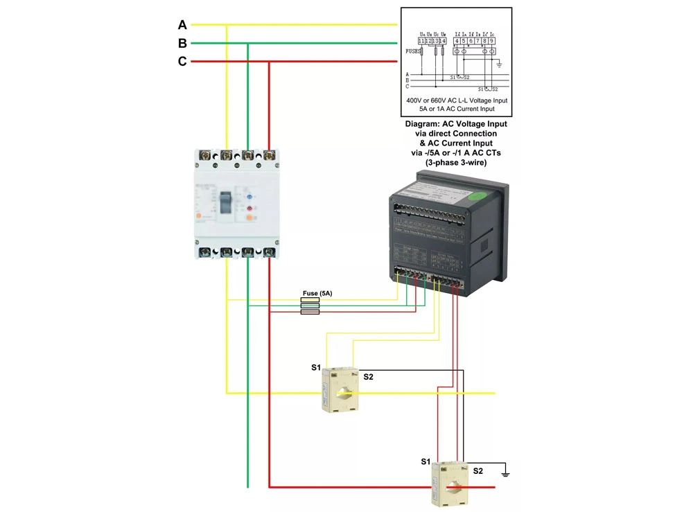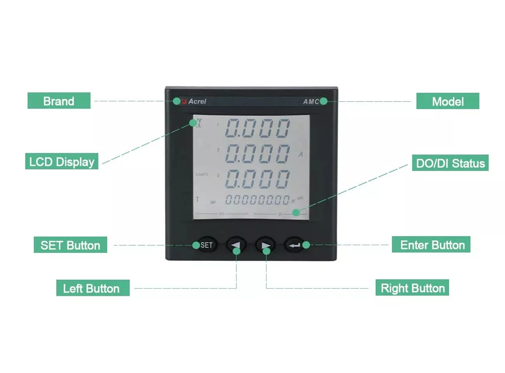 AMC96L-E4/KC 3 phase multi-function power meter adopts high-brightness LED/LCD display interface, and realizes parameter setting and control through buttons, which is very suitable for real-time power monitoring system. It can directly replace conventional power transmitters and measuring instruments. As an intelligent and digital front-end acquisition component, the instrument has been widely used in various control systems, SCADA systems and energy management systems.