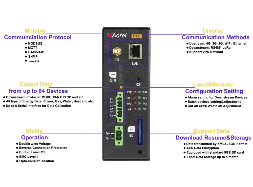 Acrel ANet-1E2S1-4G Smart IoT Gateway