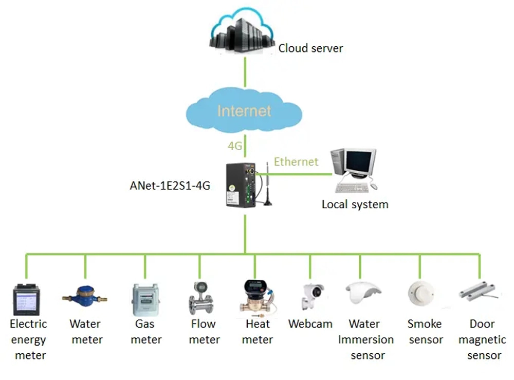 The ANet smart IoT gateway is an embedded hardware computer platform with multiple downlink communication interfaces and one or more uplink network interfaces. As a bridge between the collection terminal and the platform system in the information collection system, it can collect and summarize the data of water meters, gas meters, electricity meters, microcomputer protection and other equipment terminals according to different collection protocols, and use the corresponding protocols to forward the data of field devices to the platform system.