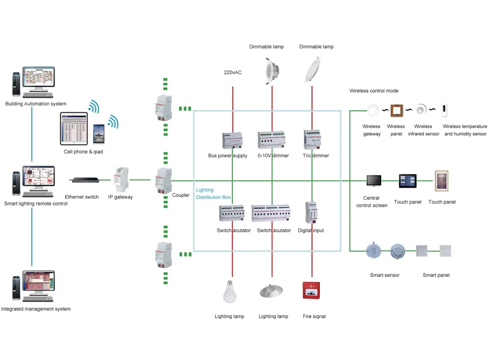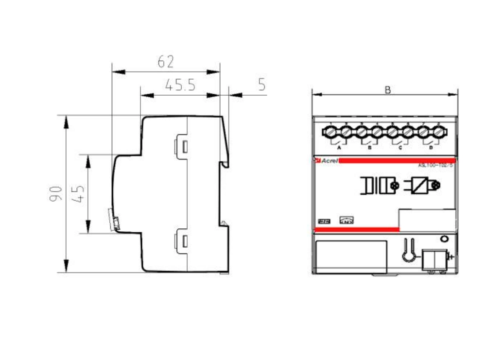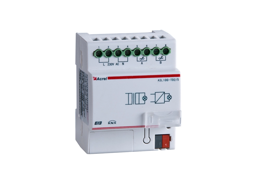 ASL100-TD2/5 KNX smart lighting silicon controlled dimming driver is a dimming module based on the Acrel-bus intelligent control system. It adopts the European KNX communication bus to realize intelligent lighting control of large buildings and public buildings. It adopts advanced single-chip microcomputer technology and is an intelligent control module with high stability and reliability. It cooperates with other control modules such as intelligent panels and dry contacts to realize intelligent lighting control. And it realizes the dimming function of the LED by directly controlling the high-voltage part, and uses 30V DC voltage at the communication end for module power supply, and also for system communication.