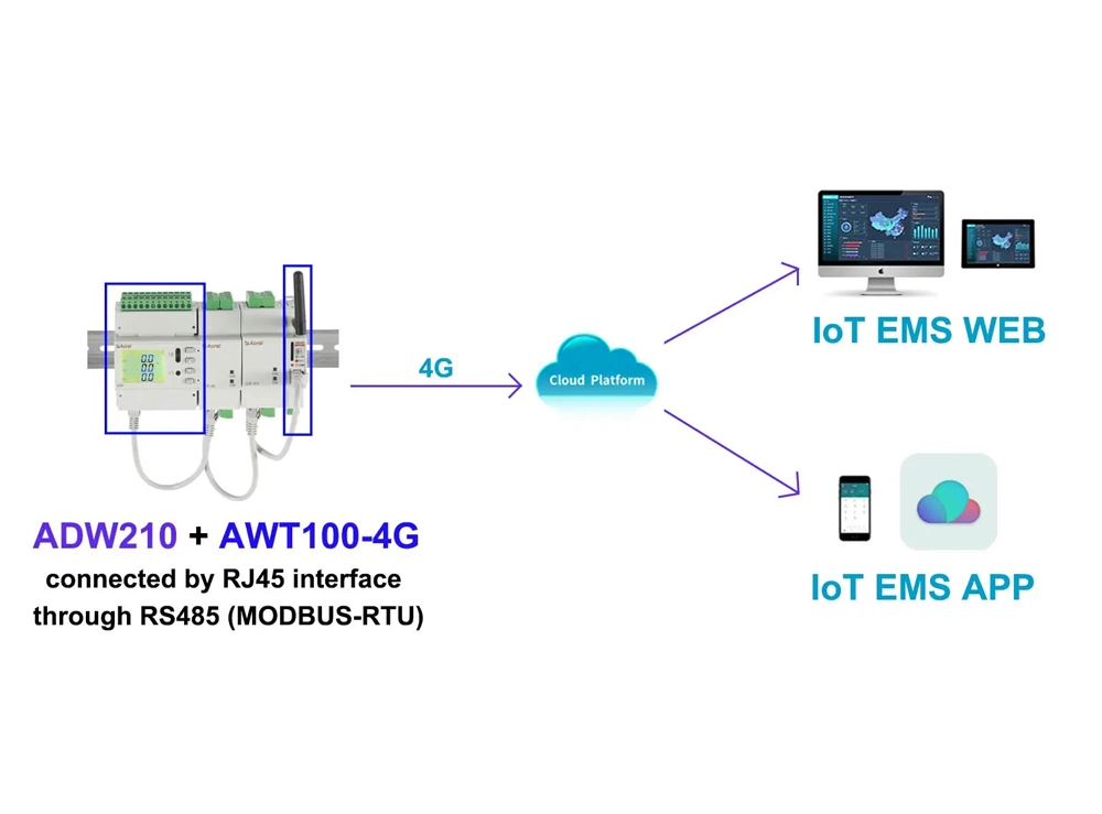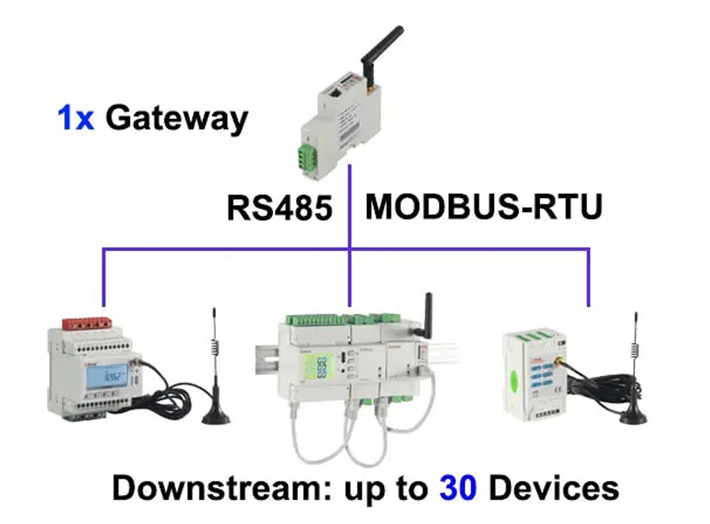 AWT100 wireless gateway communication terminal is a new type of data conversion DTU launched by Acrel. Communication data conversion includes 2G, 4G, NB, LoRa, LoRaWAN, GPS, WiFi, CE, DP and other communication methods. The downlink interface provides a standard RS485 data interface. It can be easily connected to power meters, RTUs, PLCs, industrial computers and other equipment, and only needs to complete the initial configuration once to complete the data collection of MODBUS equipment.
