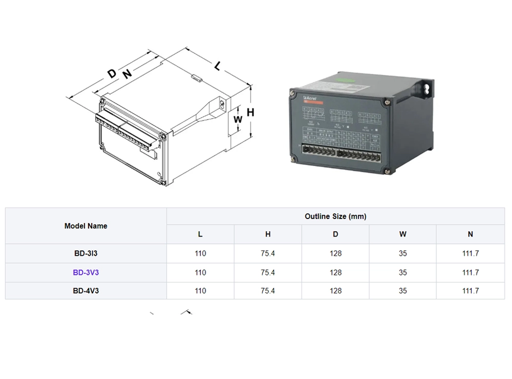 Acrel BD-3V3 Three Phase AC Voltage Transducer