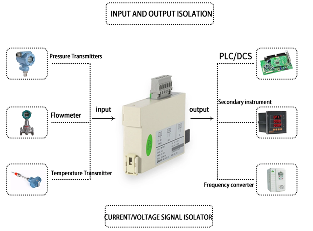 BM series analog signal isolator can perform high-speed and accurate measurement of electrical parameters such as current and voltage or non-electrical parameters such as temperature and resistance, and convert them into standard analog signal output after isolation. It can be directly connected with pointer meters and digital display meters, and can also be connected with automatic control instruments (such as PLC), various A/D converters and computer systems. It is widely used in electric power, railway, petrochemical, metallurgy, chemical industry, food It is a product with high cost performance in the automation system of industries such as warehousing and warehousing.