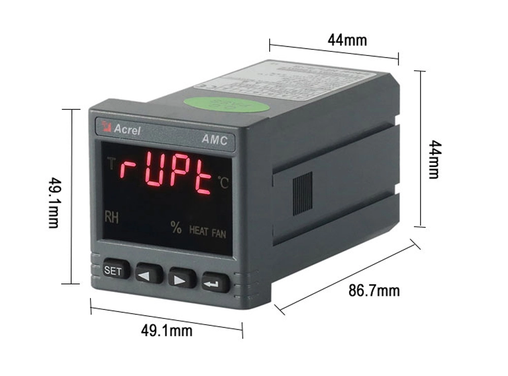 Acrel's WHD48-11 is a modbus RS485 temperature and humidity multi-sensor with a measuring range of -40.0°C to 99.9°C for temperature and 0% to 99% RH for humidity. With precision of ±1°C and ±5%RH, its transmitting output is DC 4-20mA or DC 0-20mA. The controller's working condition has a temperature range of -20°C to +60°C and humidity of ≤95%RH, without condensation and corrosive gas. Suitable for humidity control, heating for temperature rising, and blowing for temperature decreasing, it has output contact capacity of 5A/AC250V and communication port of RS485, Modbus (RTU) treaty.